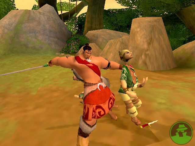 Rau Utu, le héros du jeu, accompagné de Kuzo, son familier, découpe ses ennemis avec une aisance rappelant les productions actuelles. Le jeu utilise les 2 sticks analogiques de la manette. Le gauche est utilisé pour se déplacer alors que le droit permet de locker les ennemis environnants. Une fois locké, une touche est attribuée à cet ennemi pour le cogner. Je vous laisse imaginer la suite. Rau Utu peut se farcir 9 ennemis en même temps. Il peut aussi les tuer en utilisant des techniques d’infiltration qui se soldent par une mise à mort qui ferait peur à Cratos. La furtivité sera de mise pour s’en sortir. Kuzo, sert à déclencher certains mécanismes ou créer une diversion.