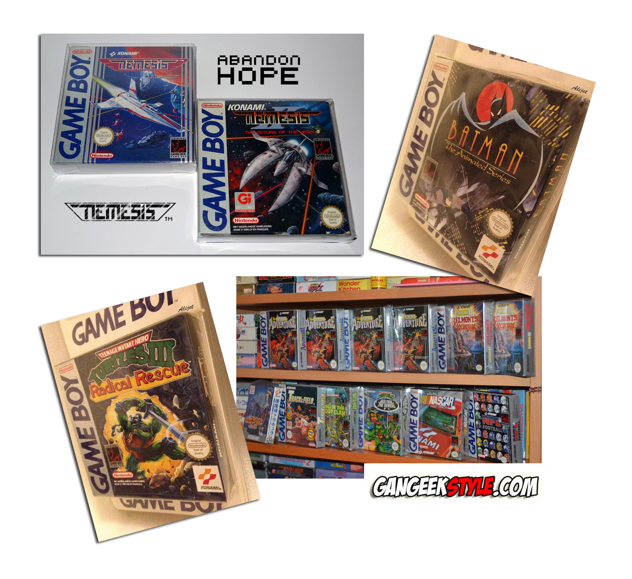 Le Game Boy a aussi eu le droit à toute une flopée de jeux made in Konami. Voyant le potentiel dollar, Konami visa également le marché de la console portable. Les premiers jeux sont au départ des adaptations des jeux Nes. D’une réalisation exemplaire, ils sont vraiment plaisants à jouer. Nous retiendrons surtout Nemesis, Parodius et Nemesis 2 qui sont d’une qualité exceptionnelle. Les Turtles sont top, les Tiny Toon aussi et Batman Animated Series est l’un des meilleurs jeu Batman à ce jour d’après Minouche. Les Castlevania sont bons, surtout le second épisode, largement au-dessus des deux autres. Kid Dracula est très réussi, dans la même veine que celui sur Famicom. Konami a aussi sorti quelques titres annexes vraiment pas mauvais, comme Motocross Maniacs ou Bill Elliot’s Nascar Fast Tracks. Même Konami Golf déchire. En gros, il vous faut des jeux Konami pour votre Game Boy.
