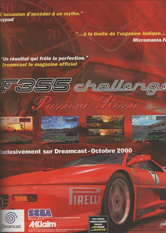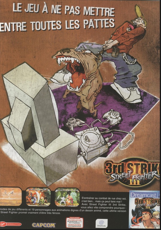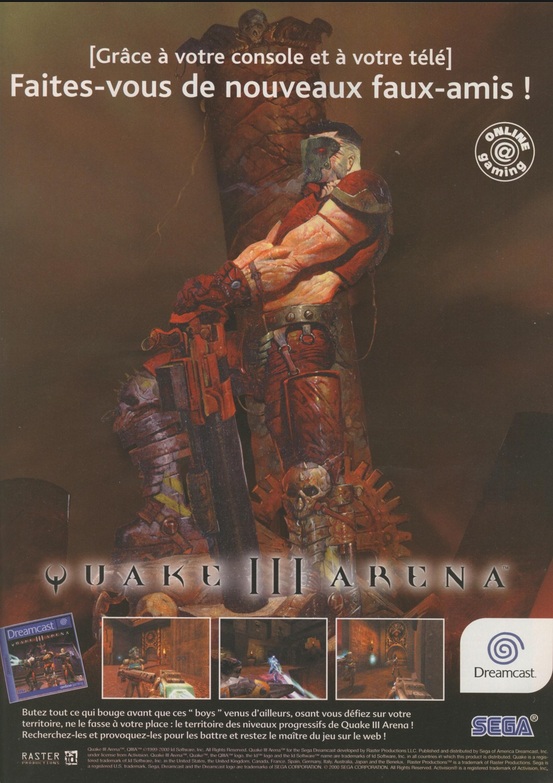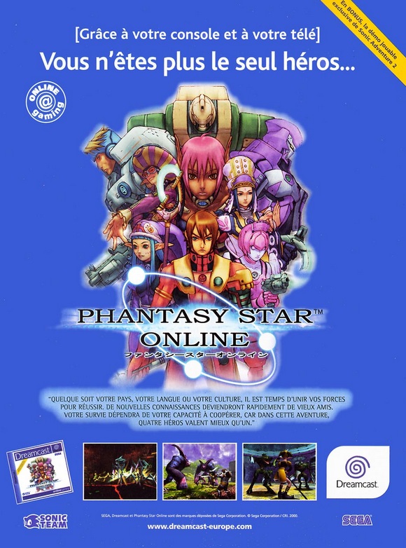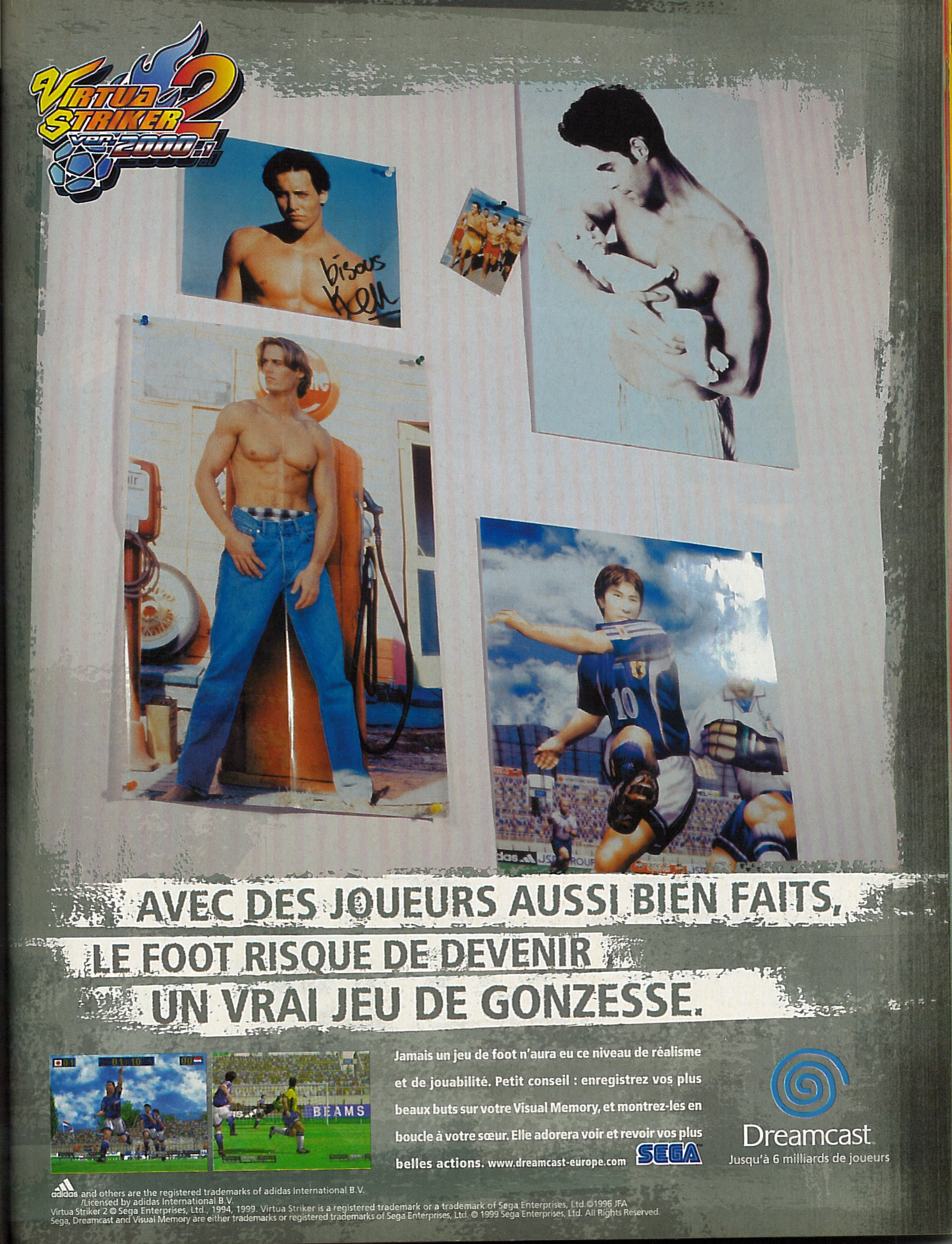 C’est la publicité qui accompagne le lancement de la console en France. On voit clairement le message de Sega adressé aux joueurs : « Venez jouer sur Dreamcast, vous ne jouerez plus seul devant votre télé ! » L’idée est sympa, c’est clair, mais à l’époque, beaucoup de foyer n’ont pas encore accès à internet et les abonnements ne sont pas donnés … au final, très peu de gens ont les moyens de se payer de l’illimité, les autres forfaits étant limités à quelques dizaines d’heures par mois, très vite grappillées si on joue en ligne et l’ADSL commençait à peine à se développer.