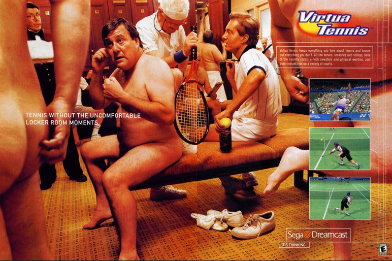 Au Japon, on peut voir une publicité en 3 épisodes où on suit les aventures de Mr Yukawa, le directeur du management de Sega en personne ! Dans le premier épisode, il entend des gamins dans la rue critiquer Sega et préférer la Playstation, du coup, le pauvre vieux va se prendre une cuite avant de se faire défoncer par des yakuzas. On aime l’humour noir chez Sega ?