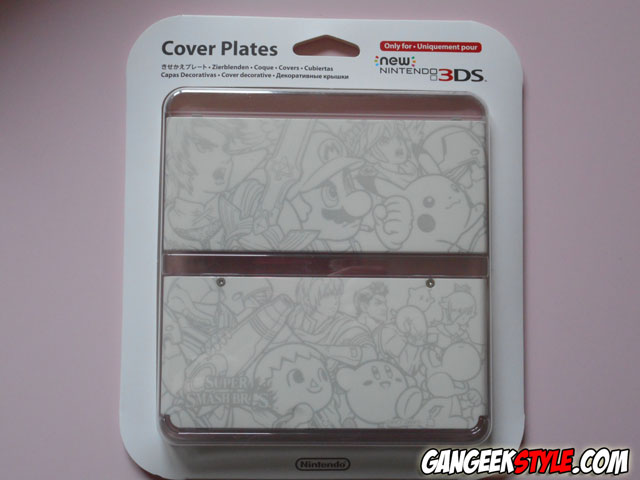 Le pack New 3DS Ambassador Edition contient donc 2 coques : l’une exclusive avec gros logo Nintendo en argenté à l’arrière et 任天堂 (Nintendo en jap) toujours en argenté, à l’avant. Le plastique des coques est brillant, ce qui contraste avec le reste de la console qui est mat. Attention donc aux rayures et aux traces de doigts ! (Nintendo a quand même bien préparé son coup… coque rayée ? Tu achètes de nouvelles coques !). L’autre coque est dédiée à Super Smash Bros.
