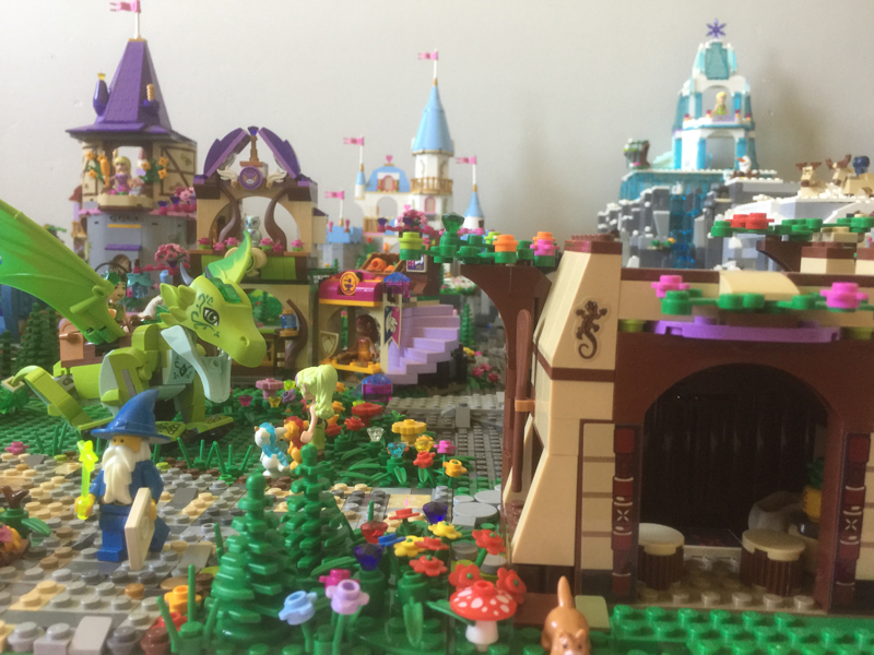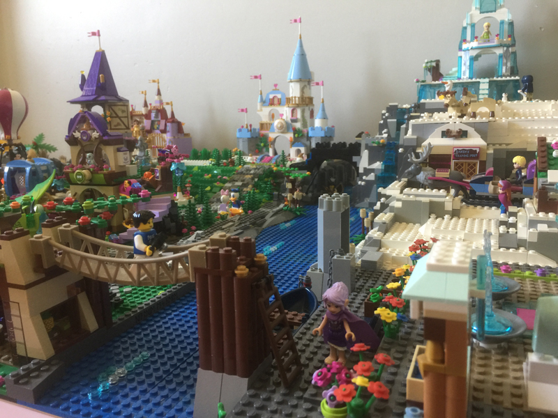 Une fois n’est pas coutume, ce n’est pas un set que je vais vous présenter dans cet article mais ma maquette mettant en scène plusieurs sets Lego, principalement issus des gammes Disney et Elves. Ma fille de 6 ans est fan de Lego. Aussi, il y a deux ans, nous sommes allées visiter la première convention Lego de Montereau (77), organisée par l’association Puissance Brick. Et puis, j’inscris par la suite ma fille aux ateliers Lego que propose cette association. L’année suivante, je participe à la seconde convention Lego de Montereau en tant que bénévole. Cette année, je saute le pas et cette fois, ça sera en tant qu’exposante ! Ma fille ayant masse de sets Disney et lui ayant promis qu’un jour on ferait ensemble un grand « village de princesses Disney », le thème était tout trouvé ! Surtout que Lego a sorti l’an passé une série complète de figurines issues de ses plus grands dessins animés.