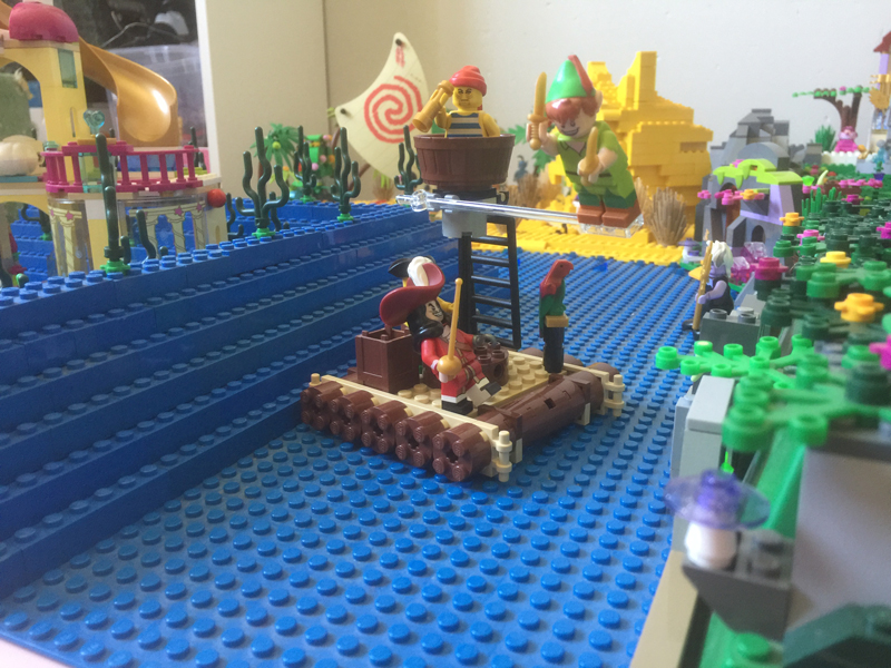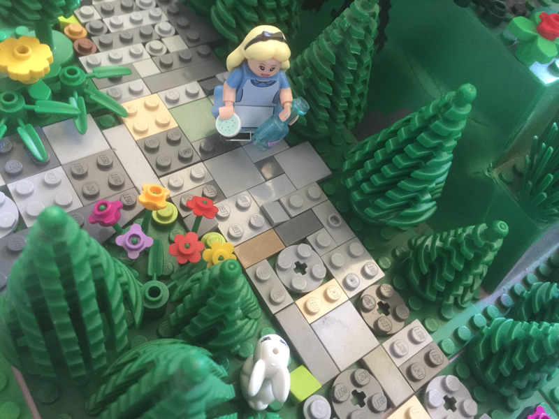 Pour finaliser, il suffit de rajouter de la végétation un peu partout et quelques personnages par ci et là et le tour est joué : Donald et Daisy qui pique-niquent, un pêcheur, Pocahontas dans sa pirogue, un skieur, Peter Pan qui vient narguer le Capitaine Crochet sur un radeau de fortune, Alice à la poursuite d’un lapin blanc…