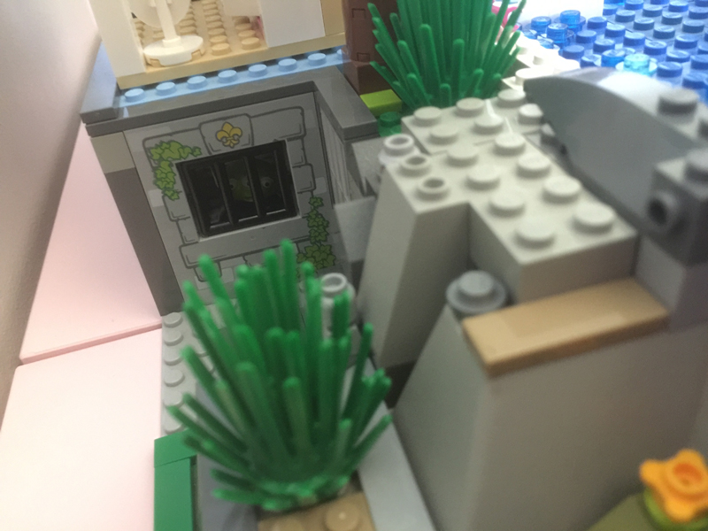 Dans la verdure au centre de la scène, j’installe la tour de Raiponce, que me réclame ma fille depuis un moment déjà mais dont je ne savais pas trop où placer jusqu’à maintenant.