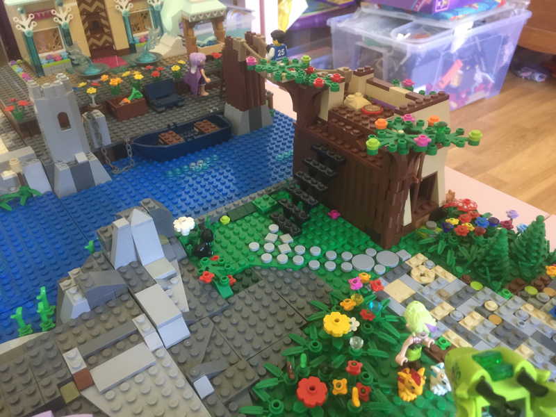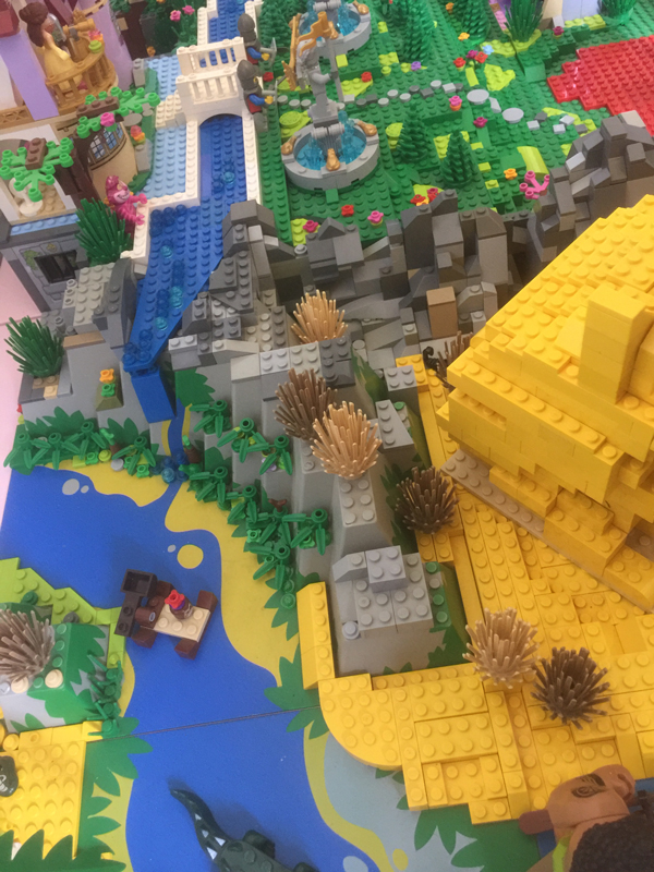 Pour matérialiser le passage de la mer à la terre, j’ai inséré un morceau de set Elves de ma fille (set 41175), avec une porte de lave coulissante.